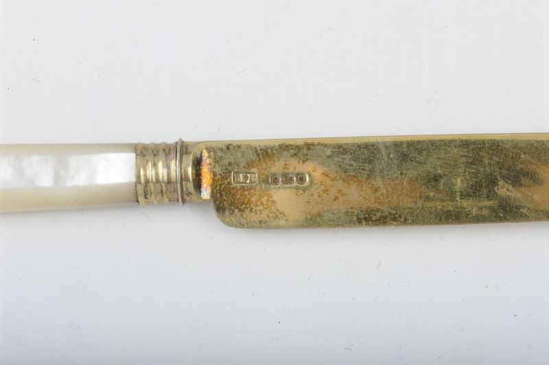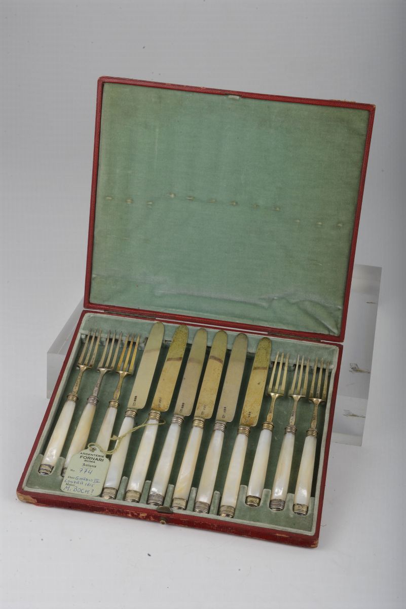 Set di sei forchette e sei coltelli in argento vermeille, punzoni di Londra per il 1835 e dell'argentiere