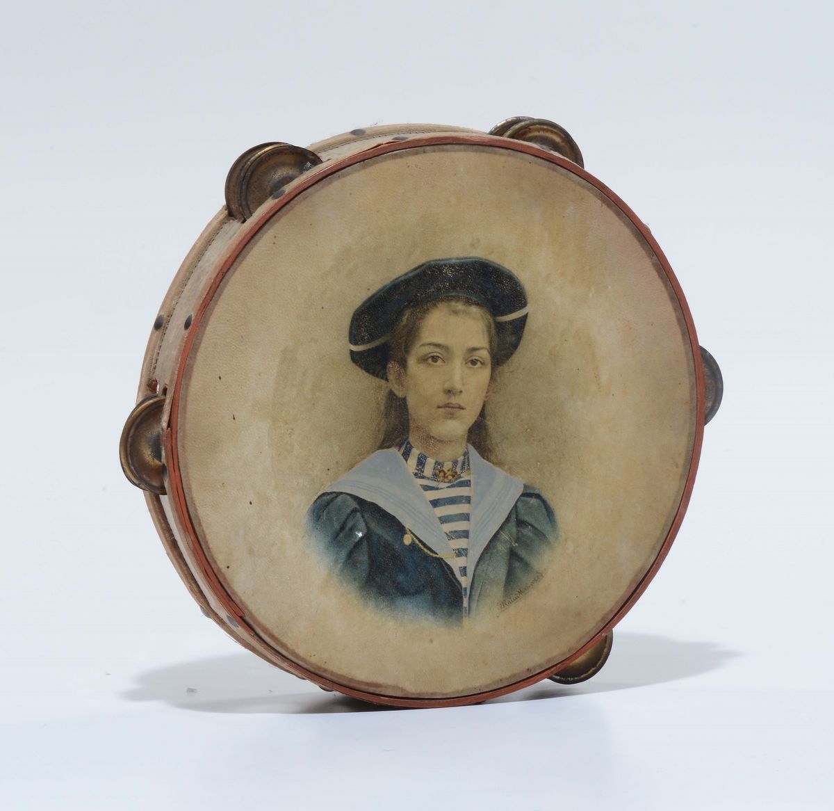 Tamburello dipinto con ritratto femminile, inizio XX secolo