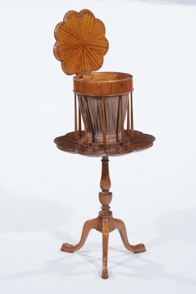 Tavolinetto da lavoro lastronato ed intarsiato, XIX secolo