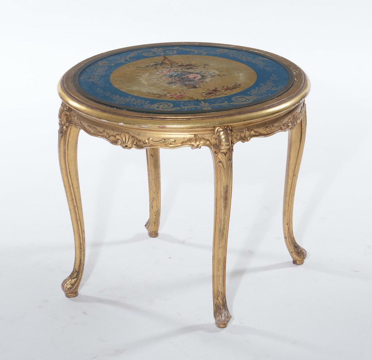 Tavolino basso circolare dorato con piano laccato, XX secolo