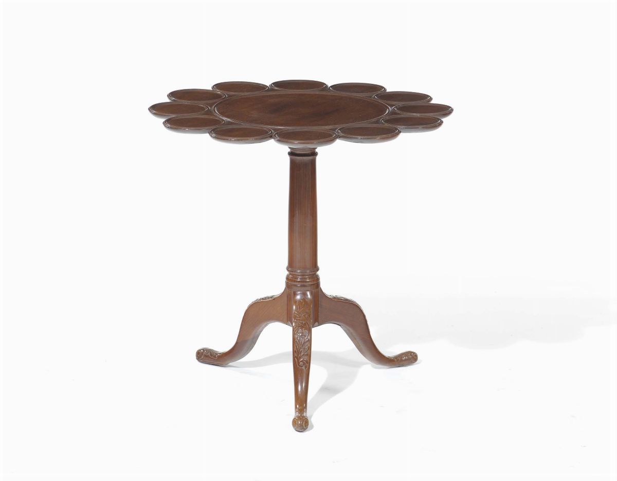 Tavolino da centro in mogano con piano lobato. Inghilterra XIX secolo