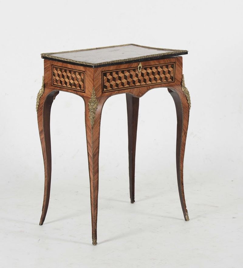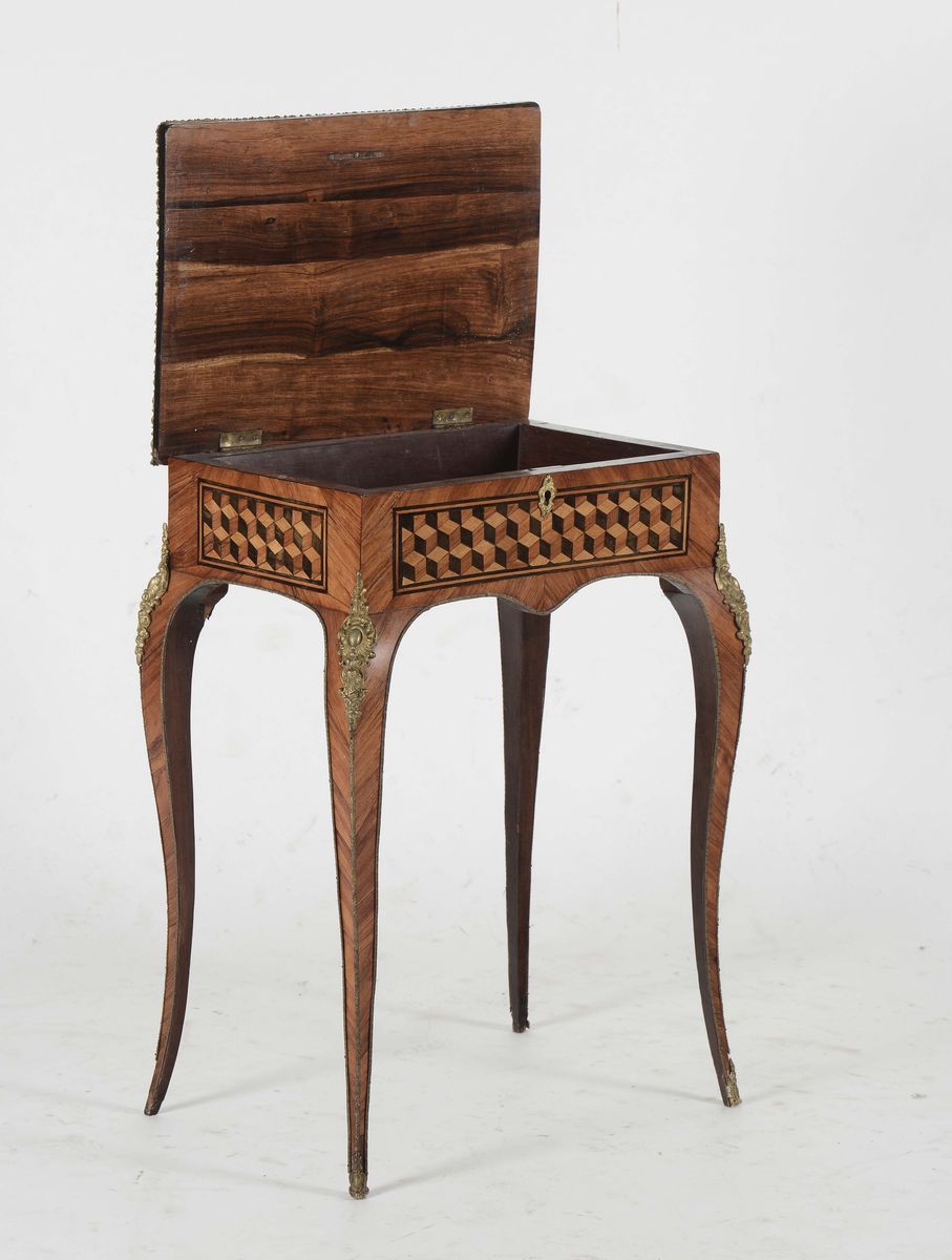 Tavolino da lavoro Napoleone III lastronato ed intarsiato, XIX secolo