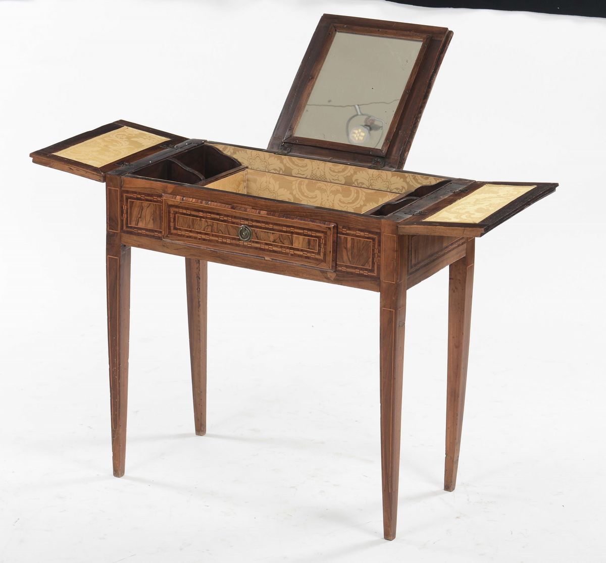 Toelette interamente lastronata ed intarsiata, inizio XIX secolo