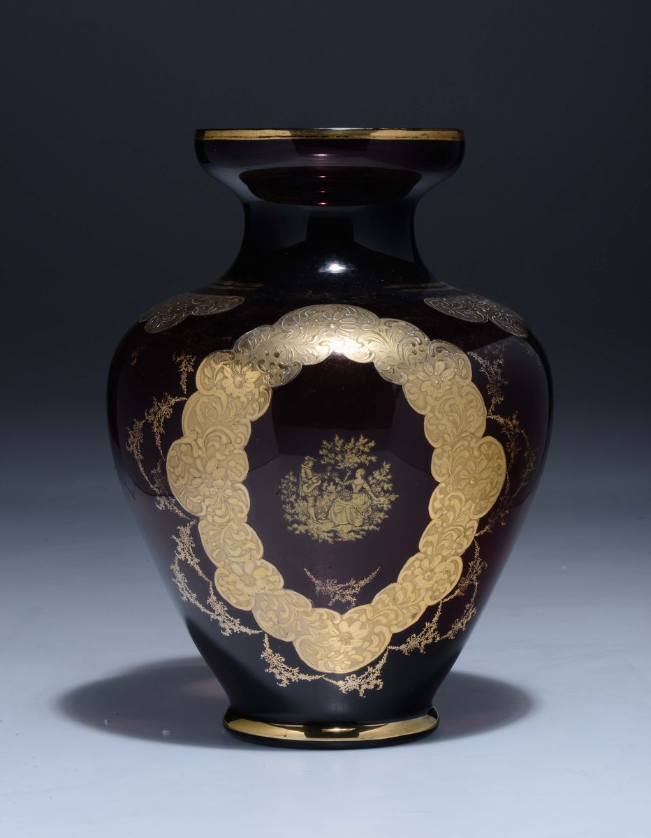 Vaso in vetro con decoro dorato, Francia, XIX secolo