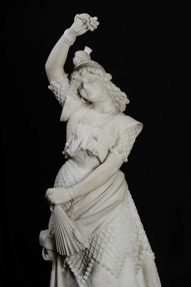 scultura in marmo bianco su colonna in marmo verde, altezza cm 127, colonna cm 69. Sul retro «Prof.F.Galli» e «Gallerie P.Barzanti»