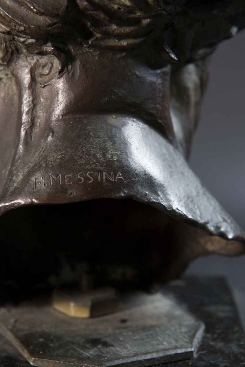 L'anziano uomo ritratto in questa piccola testa bronzea è quel "Giacan" che il poeta e narratore Giovanni Descalzo (...) descrive come il vagabondo che "non ha mai dormito a letto e non potrebbe prendere sonno se in tasca gli fosse rimasto un ventino dei guadagli giornalieri raggranellati come stalliere o dando una mano ai marinai" e che "non riesce a capire come u sciu Mexin-na abbia potuto scegliere proprio lui". La scelta, in realtà, non è affatto sorprendente perchè proprio a Sestri Levante, a contatto con l'umanità semplice e umile dei pescatori e marinai, l'arte di Messina conosce la sua fase di maggiore realismo. (...) Nel 1935 la galleria dei personaggi di Sestri Levante sarebbe approdata alla Quadriennale romana e De Scalzo, nel suo scritto, pregusta il momento in cui (...) "tutta una folla di pescatori e gandulli della marina" sarebbero andati a popolare con la loro palpitante vitalità "una vasta sala della grande esposizione" segnando il trionfo "dei beduini, degli scioani, sulle mezze marsine" e, dunque. la vittoria di tutto il paese. Per non perdersi l'evento, secondo De Scalzo, a Roma, magari con un treno popolare, sarebbe andata tutta la tribù, persino Giacan