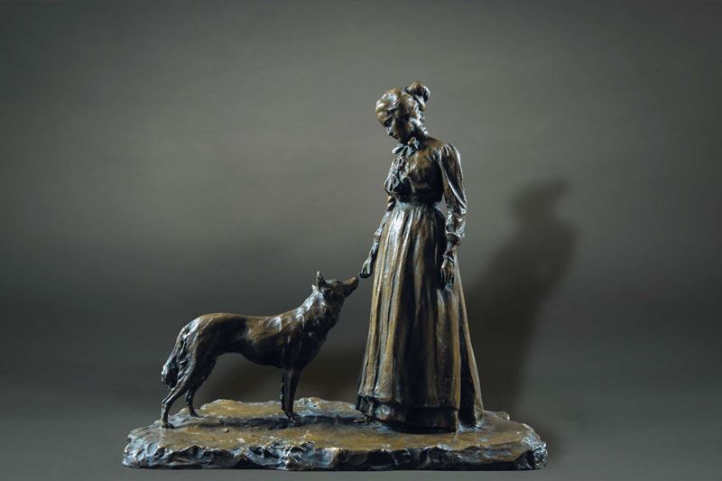 Pavel Petrovitch Trubetskoy (1866-1938) Angelina in piedi con il cane