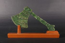 Ascia in giada spinacio con fenice incisa sulla lama, Cina, Dinastia Qing, XIX secolo
