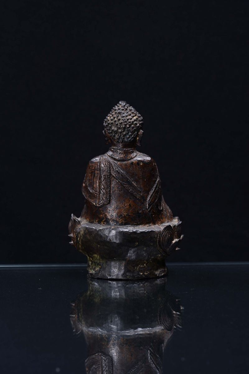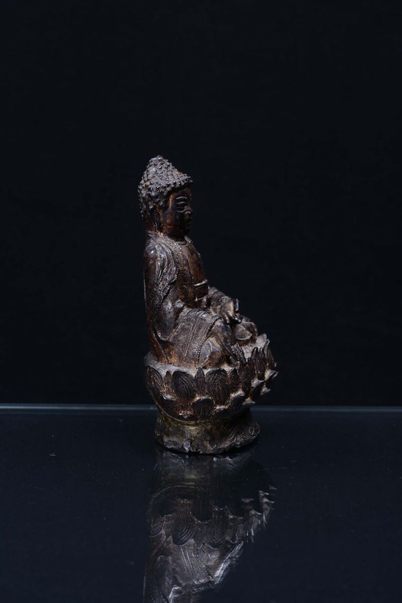 Buddha in bronzo seduto su fiore di loto, Cina, Dinastia Ming, XVII secolo