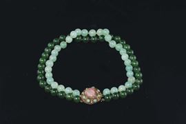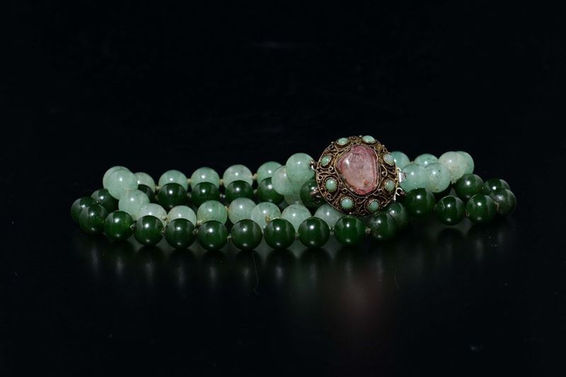 Collana in giada verde e fermezza in quarzo rosa, Cina, XX secolo