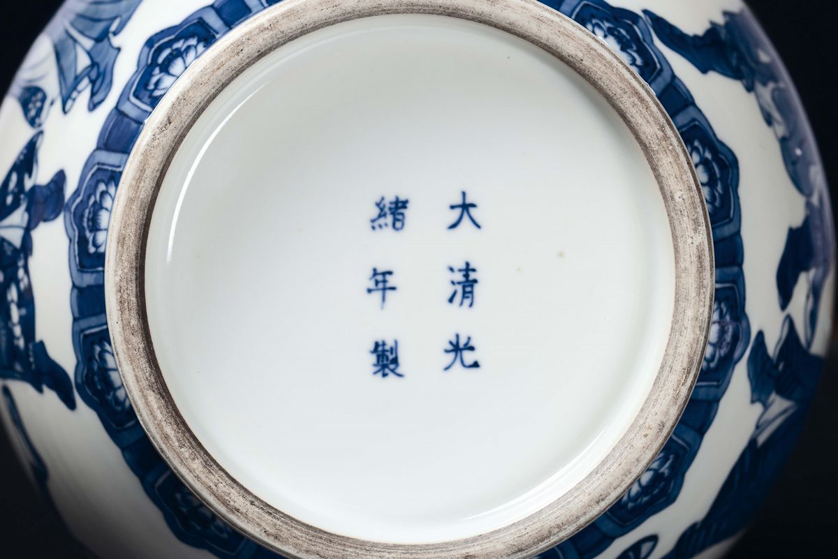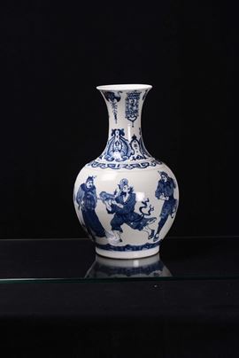 Grande vaso in porcellana bianca e blu raffigurante guerrieri, Cina, Dinastia Qing, Marca e del Periodo Guangxu (1875-190 [..]