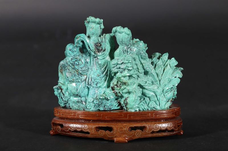 Gruppo in turchese raffigurante Guanyin e dignitario, Cina, XX secolo