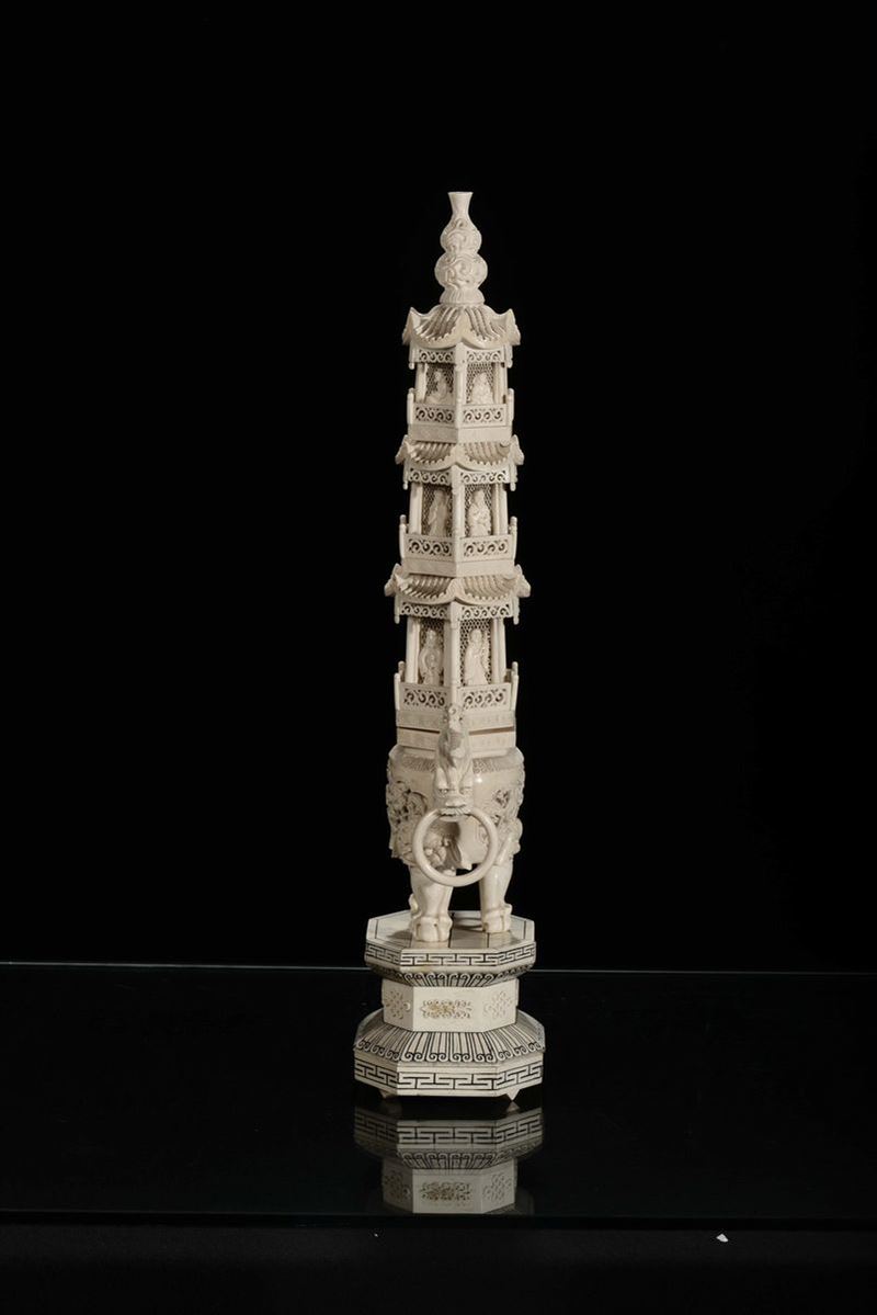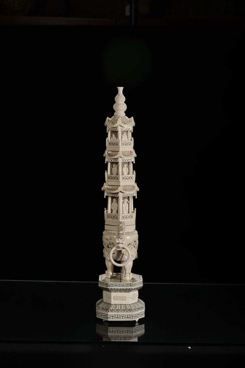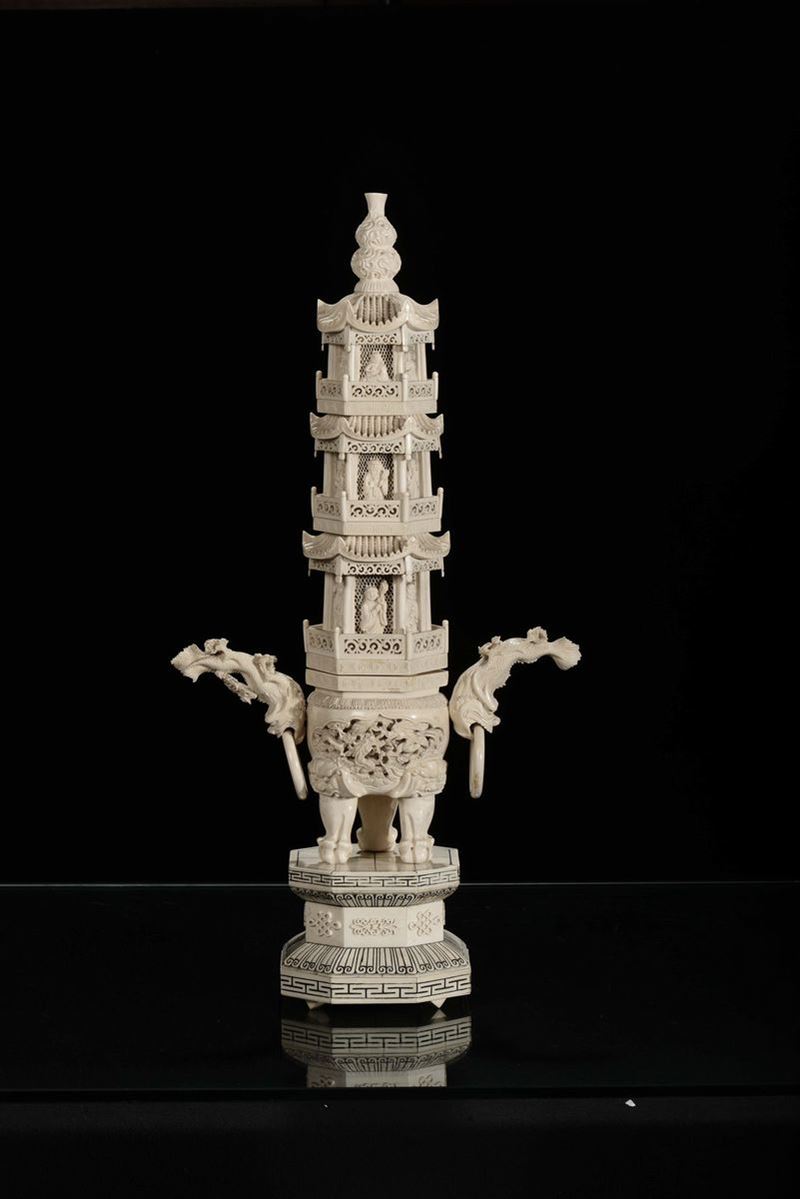 Pagoda in avorio scolpito e traforato, Cina, Dinastia Qing, inizio XX secolo