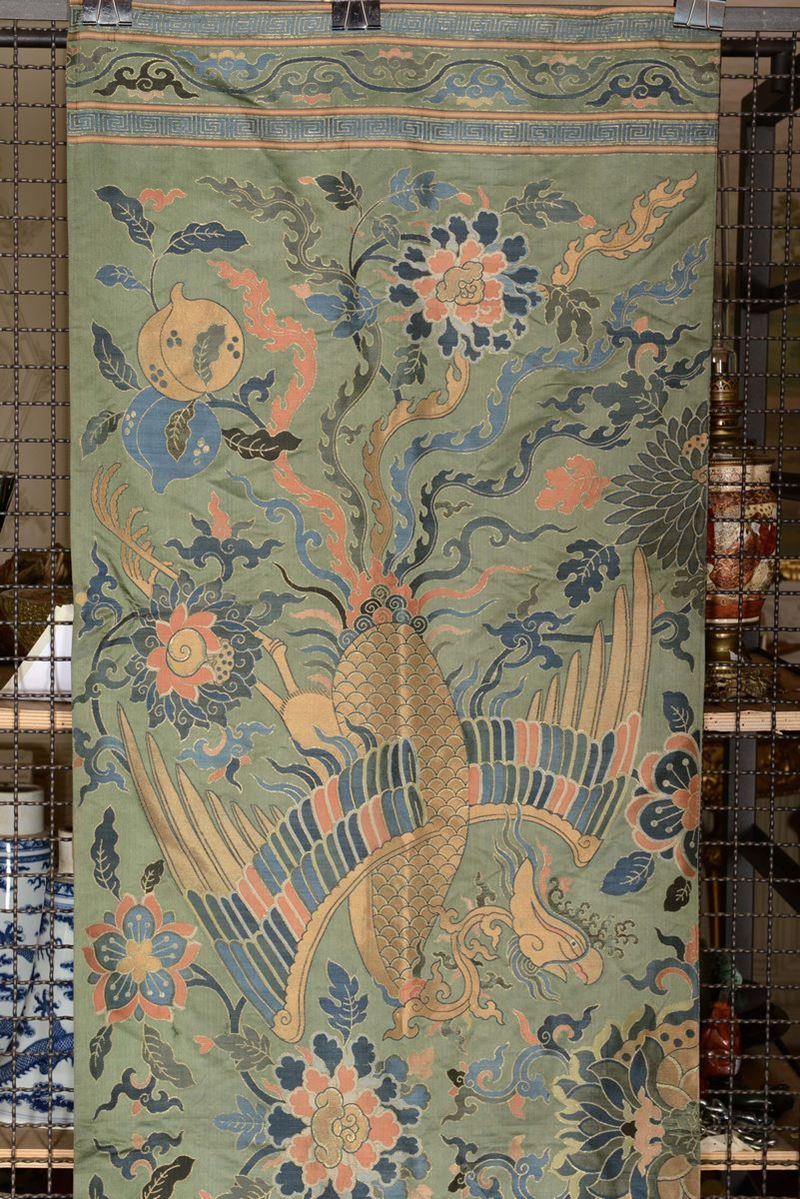 Piccolo tessuto in seta ricamata con due fenici, Cina, XX secolo