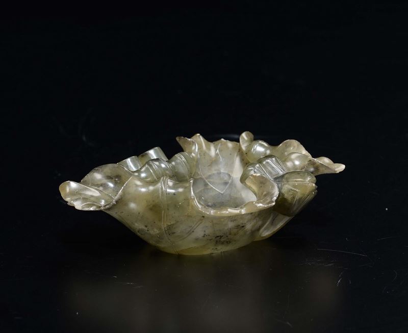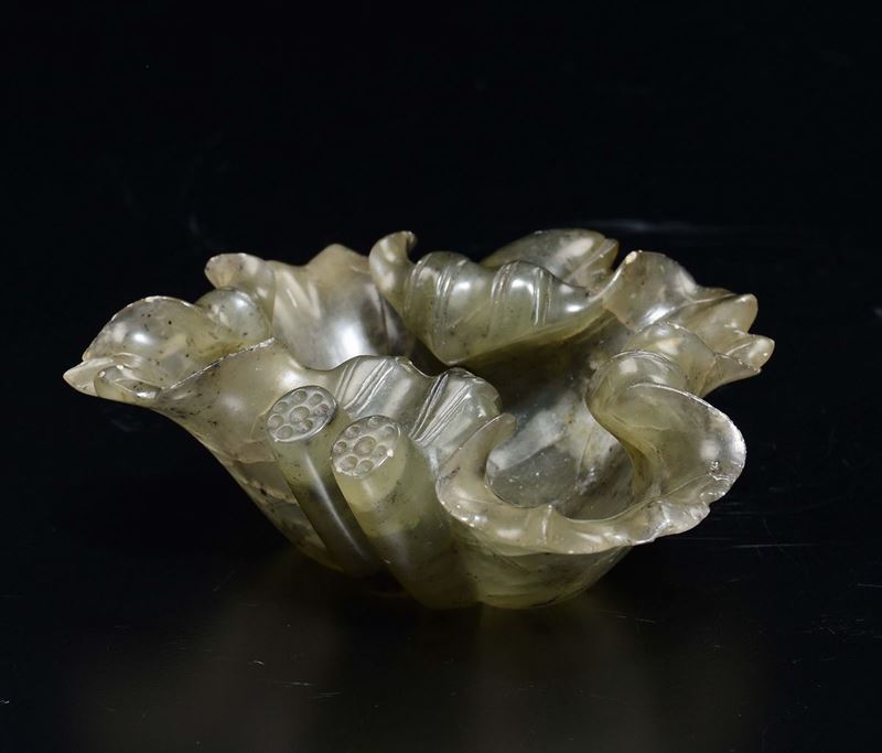Sciacquapennelli in giada verde a forma di fiore di loto, Cina, Dinastia Qing, XIX secolo