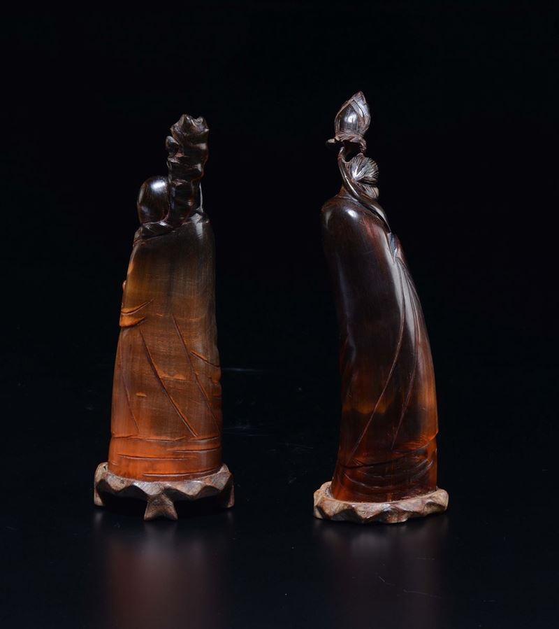 Sculture in corno di bue raffiguranti Guanyin e dignitario, Cina, Dinastia Qing, fine XIX secolo