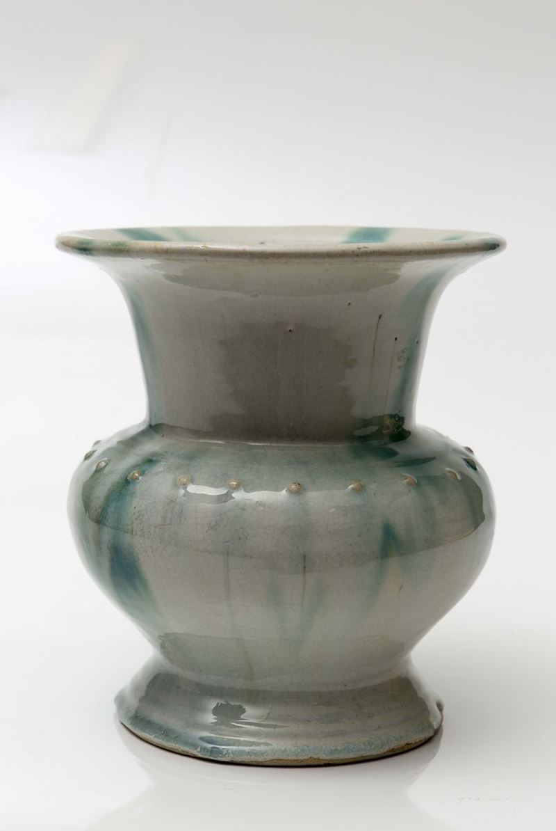 Vaso in grès smaltato con sfumature azzurre e verdi, Cina, Dinastia Qing, XIX secolo