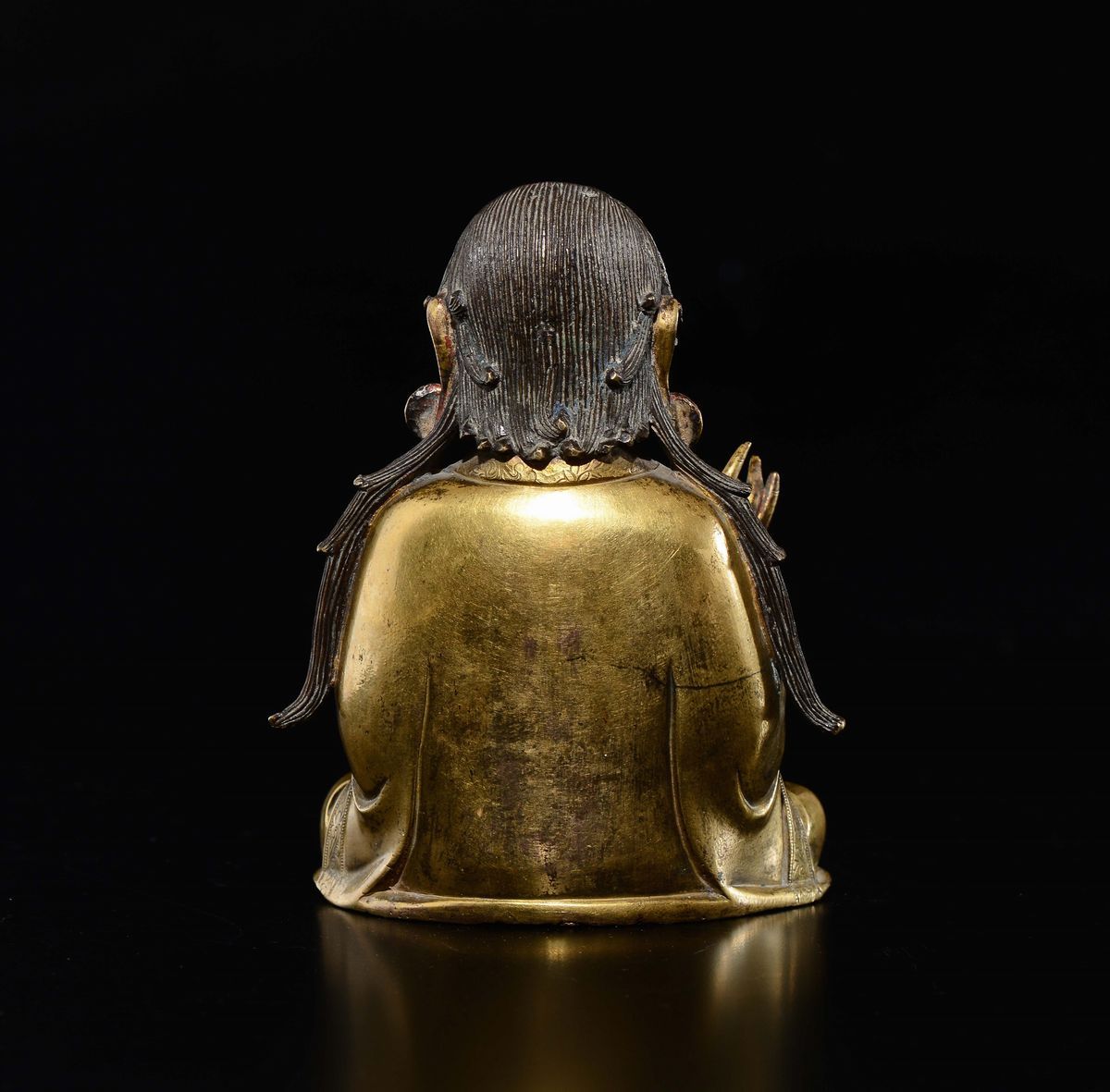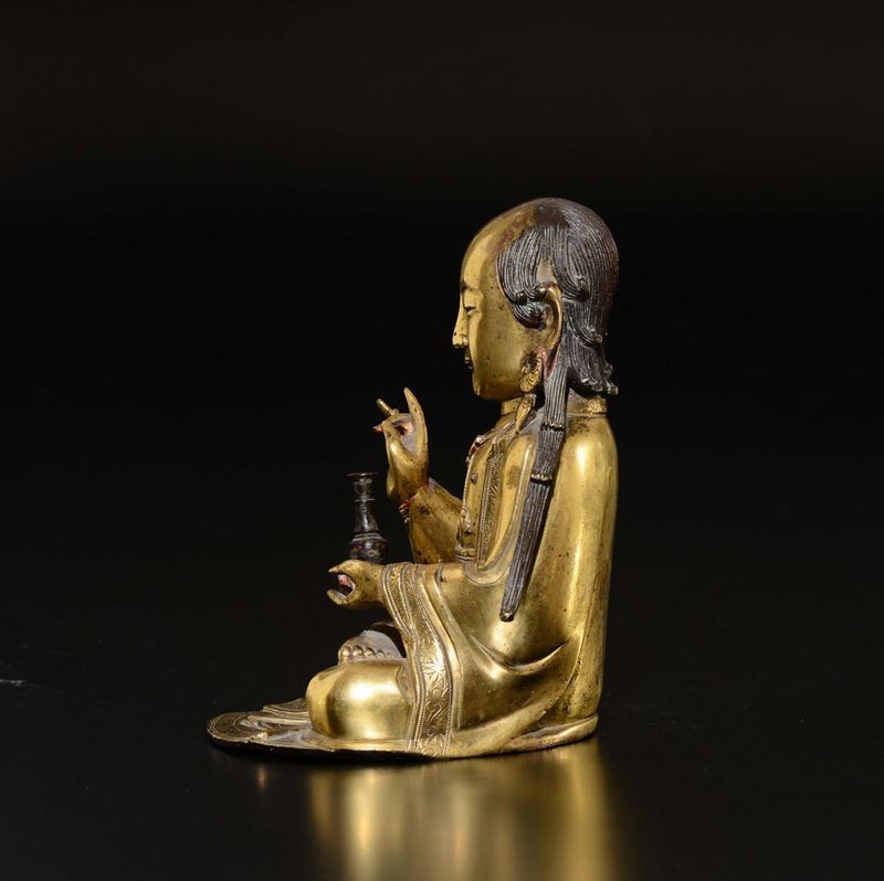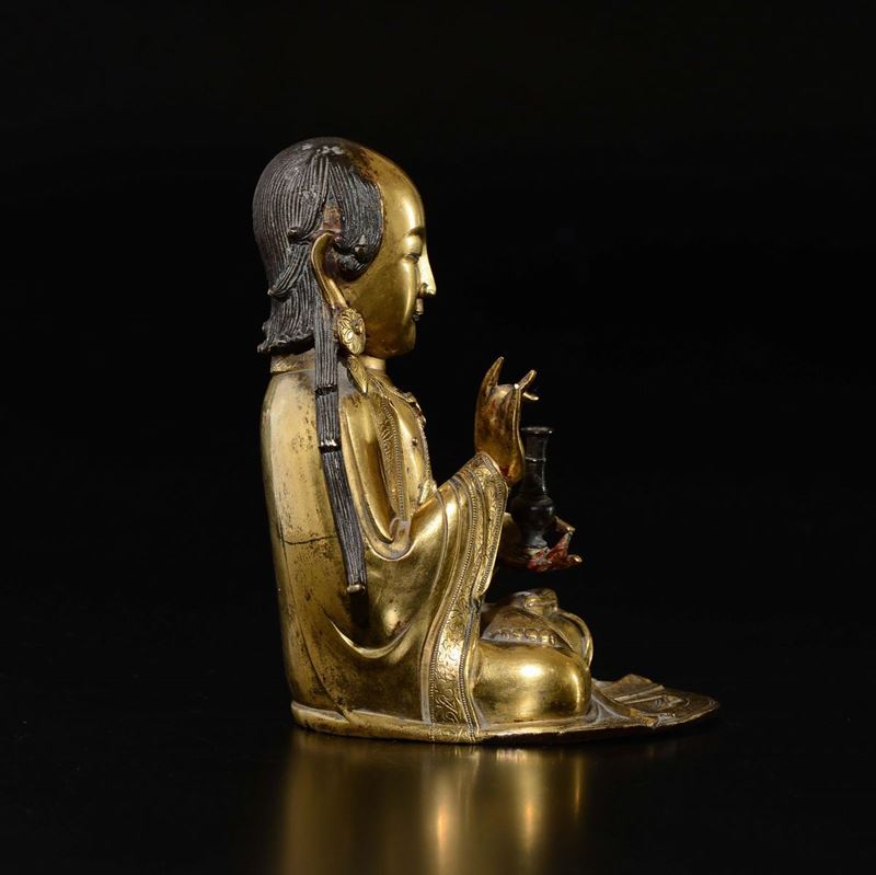 Bronzo dorato raffigurante monaco con vaso, Cina, Dinastia Ming, XVII secolo