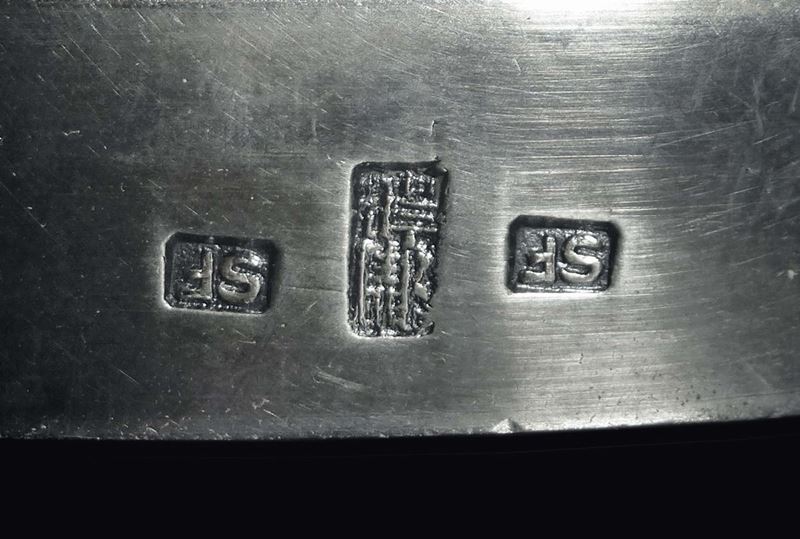 Coppia di centrotavola in argento con draghi che sorreggono coppa, Cina, Dinastia Qing, fine XIX secolo