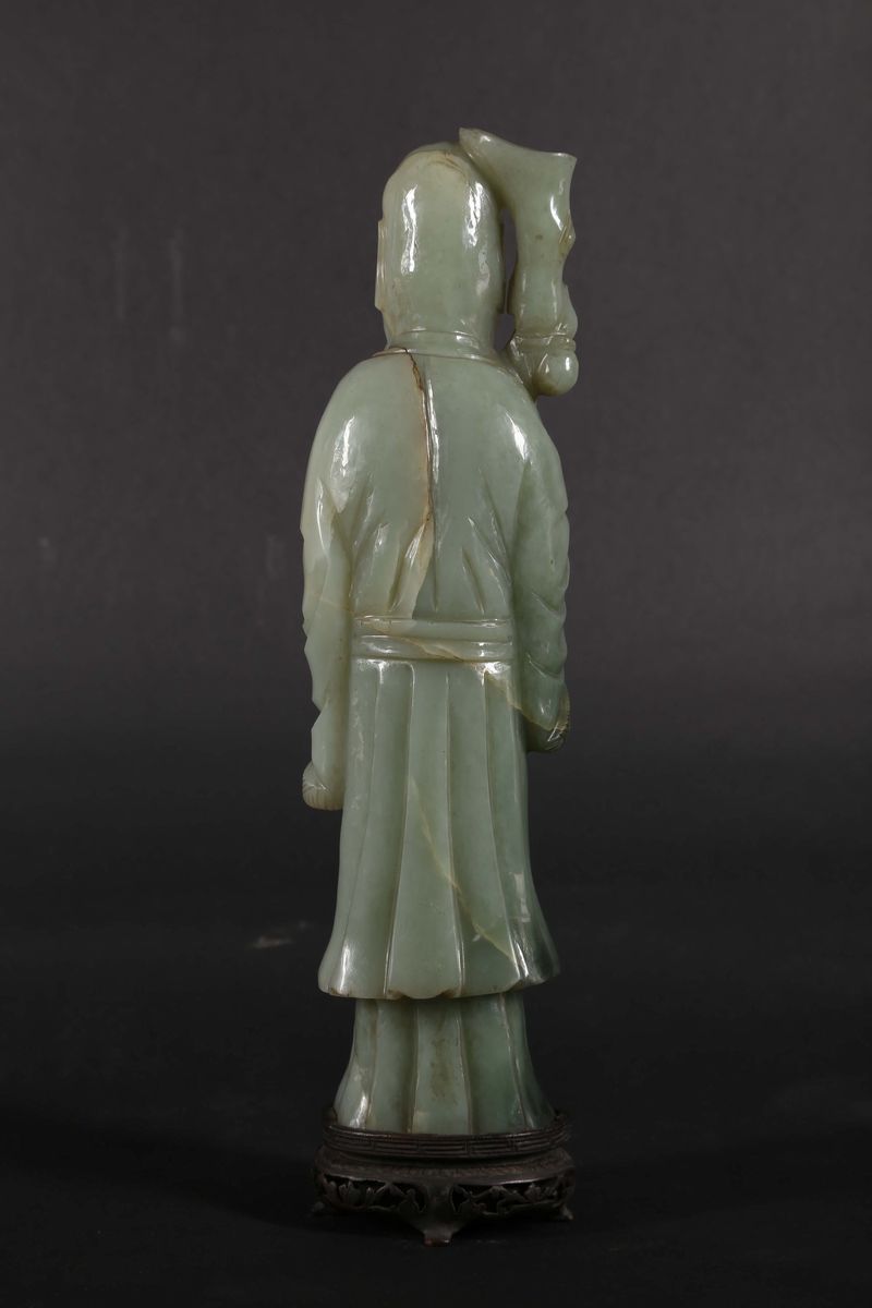 Figura di Shoulao eretto con bastone in giada Celadon, Cina, Dinastia Qing, XIX secolo