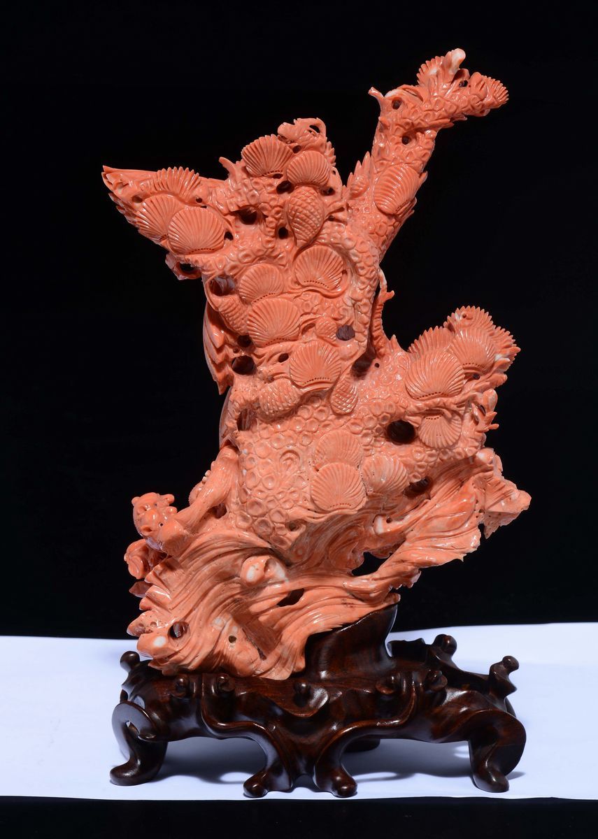 Grande gruppo scolpito in corallo con fiere, cervo ed aquila, Cina, inizio XX secolo