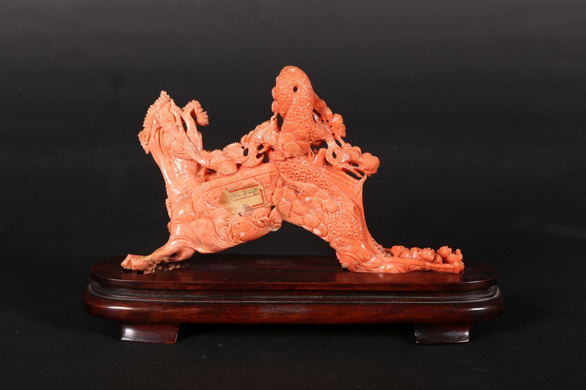 Gruppo in corallo raffigurante ponte con fanciulli, Cina, inizio XX secolo