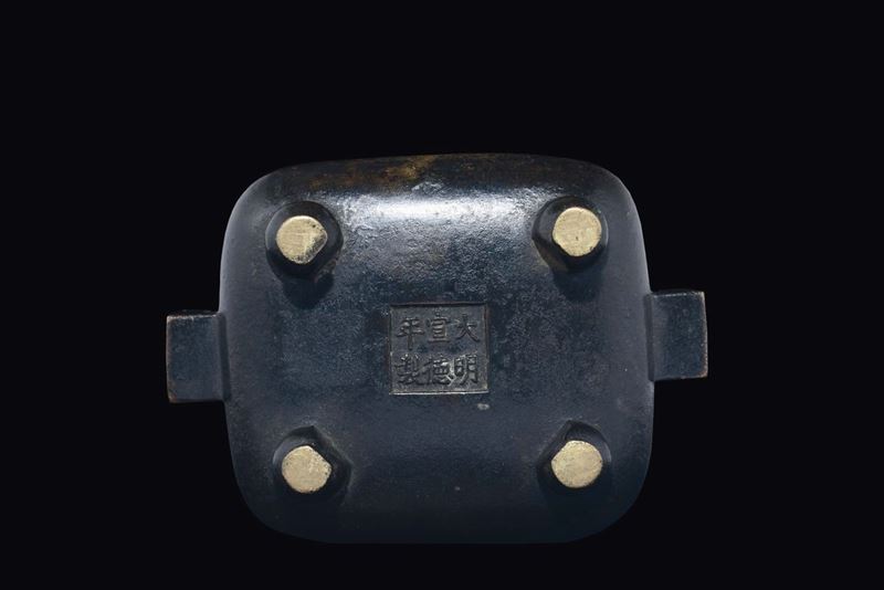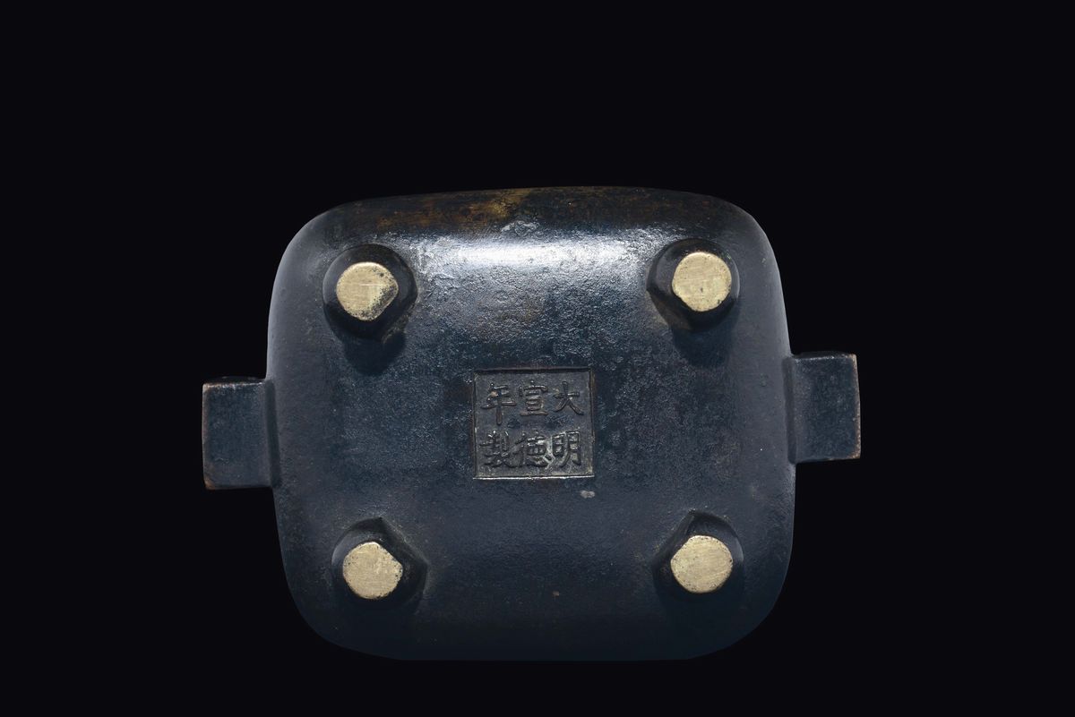 Incensiere in bronzo di forma rettangolare, Cina, Dinastia Ming, XVII secolo