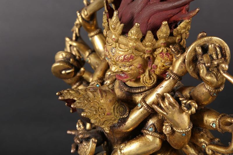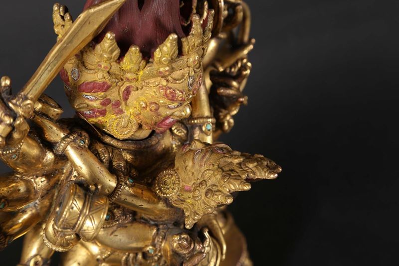 Mahakala con moglie in bronzo dorato, Cina, Dinastia Qing, fine XIX secolo