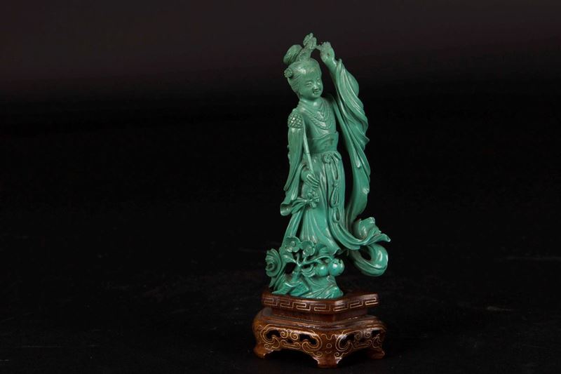Piccola figura di Guanyin scolpita in turchese, Cina, Dinastia Qing, XIX secolo