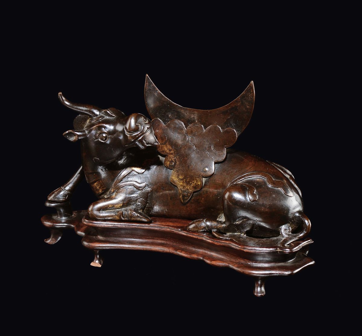 Portaspecchio in bronzo a forma di bufalo e semi luna, Cina, Dinastia Ming, XVII secolo
