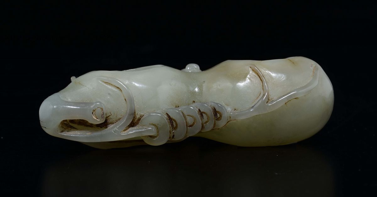 Sciacquapennelli a doppio frutto con pipistrello scolpito in giada bianca, Cina, Dinastia Qing, XIX secolo