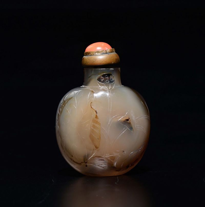 Snuff bottle in agata con pesce, Cina, Dinastia Qing, XIX secolo