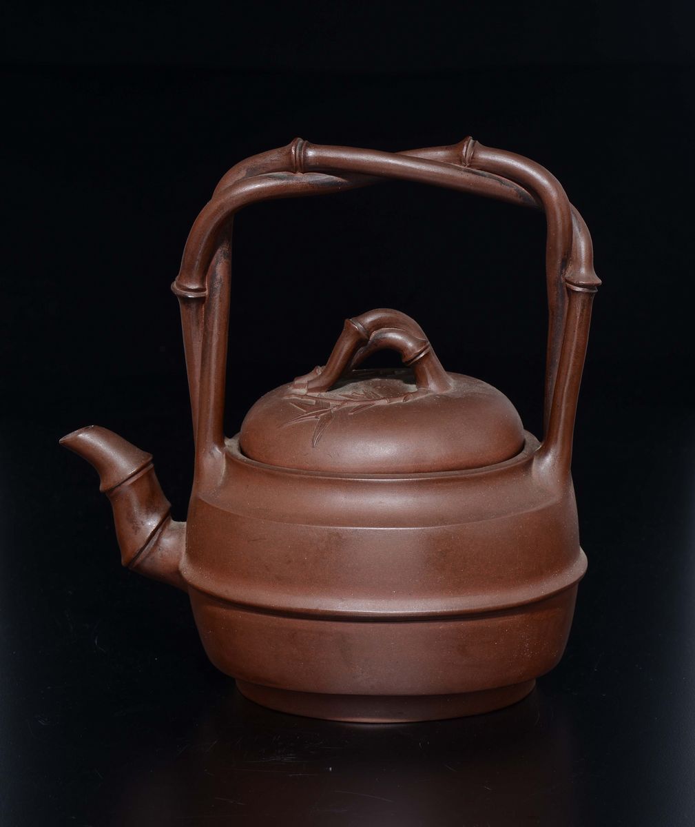 Teiera Yixing con decoro a ramo di bamboo, Cina, Dinastia Qing, XIX secolo