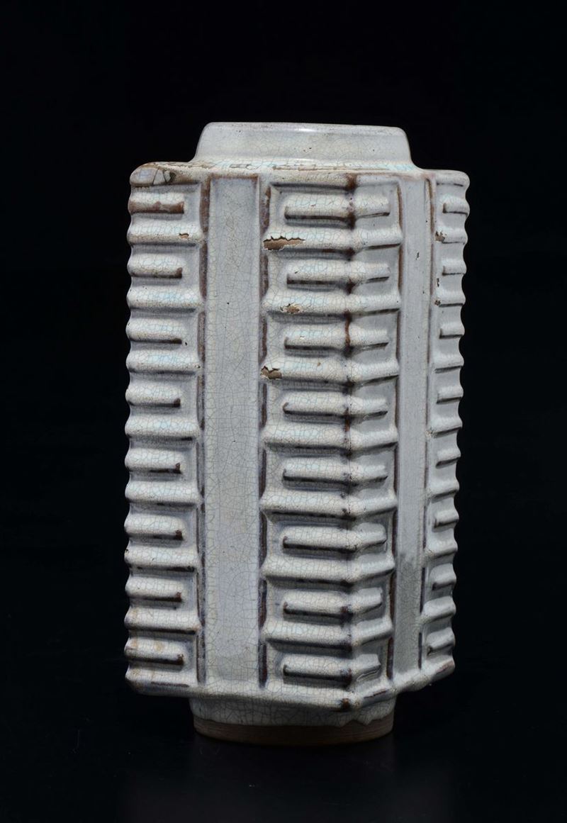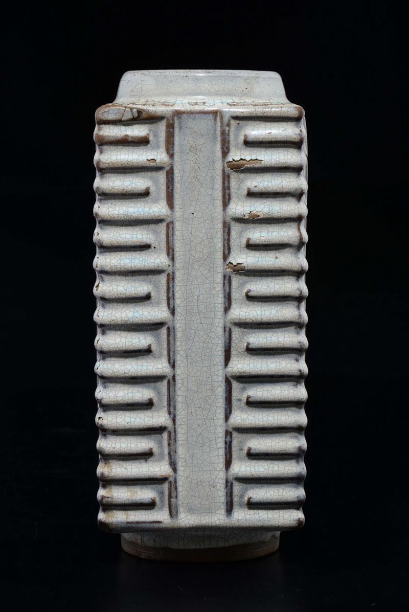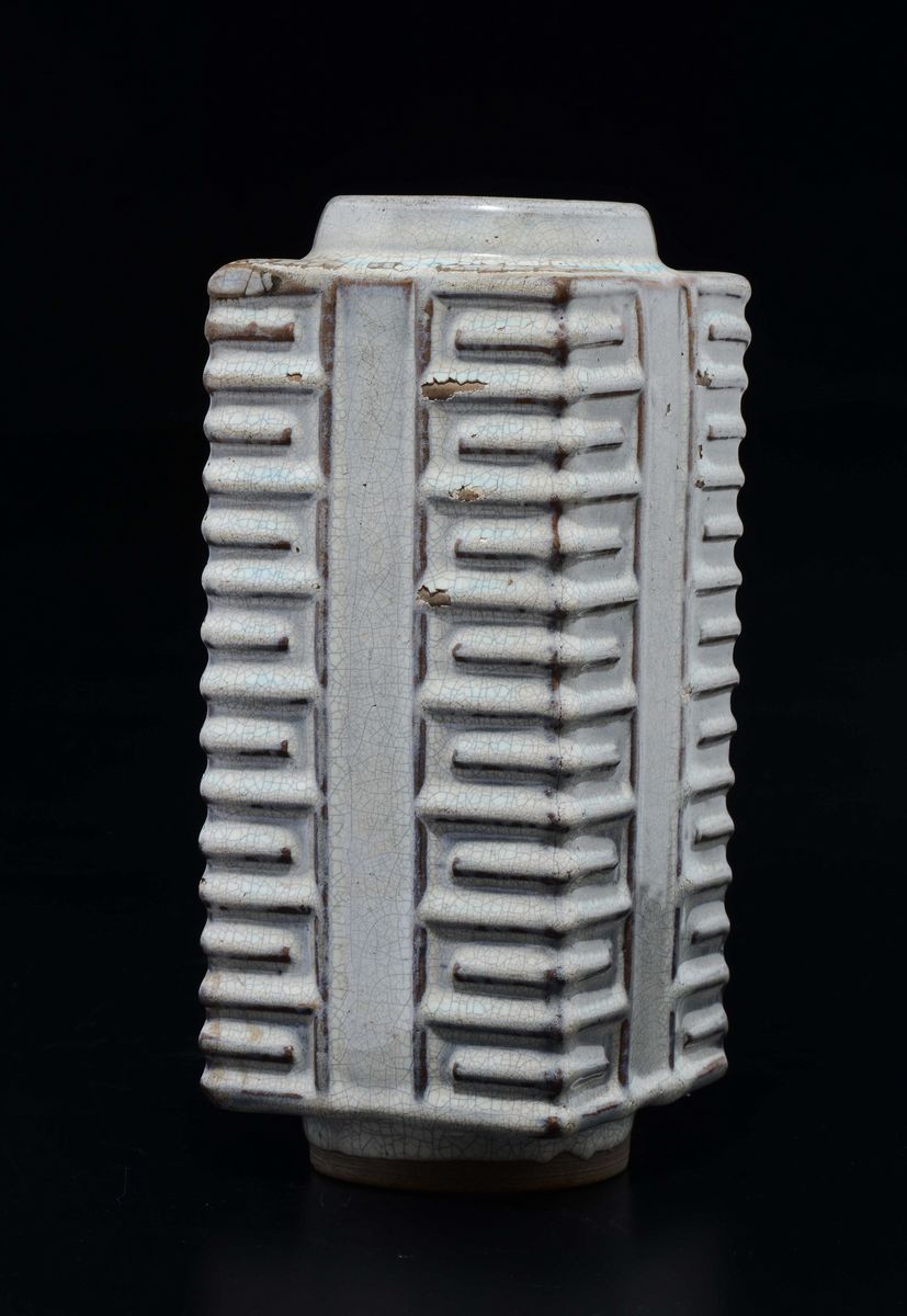 Vaso di forma Cong in grés Guan type, Cina, Dinastia Qing, XVIII secolo