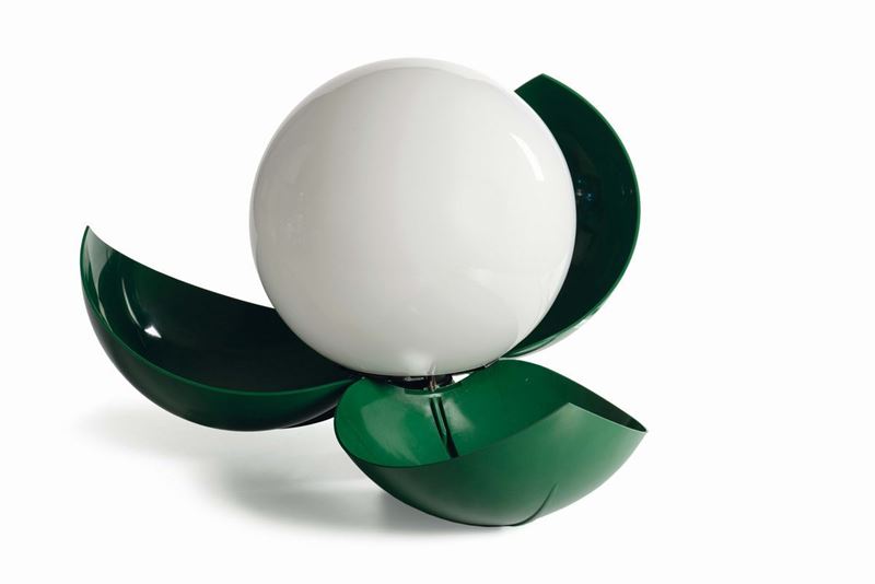 Lampada a sfera Frine con sistema a comparsa in vetro e ABS.Prod. Artemide, Italia, 1969cm 28
