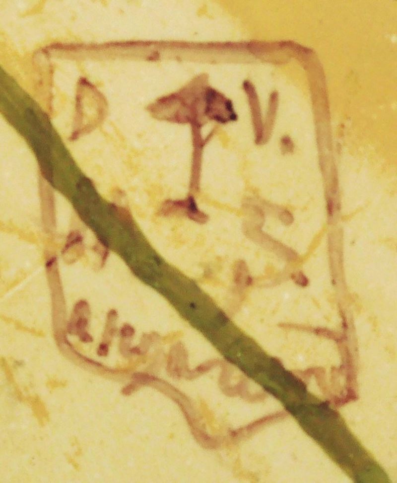 Maiolica a gran fuoco, altezza cm 50,0 circa Buono stato di conservazioneCorpo quadrangolare, composito, con lavorazioni manuali ed a stecca. La specchiera ricorda il gusto della seconda metà dell’ottocento ove lo spirito dell’eclettismo invadeva anche le produzioni ceramiche. L’insolita battuta della cornice, la tavolozza del pittore, le grottesche, il medaglione figurato e il piccolo nastro, rendono l’opera atipica. Marca Angarano.