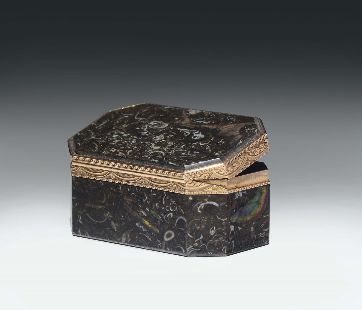 Piccola scatola con corpo rettangolare ad angoli smussati in marmo. Europa centrale XIX secolo