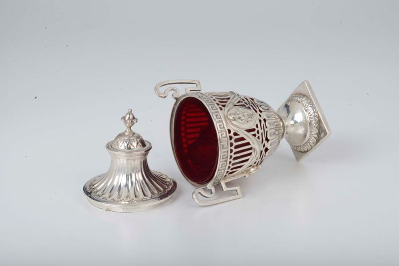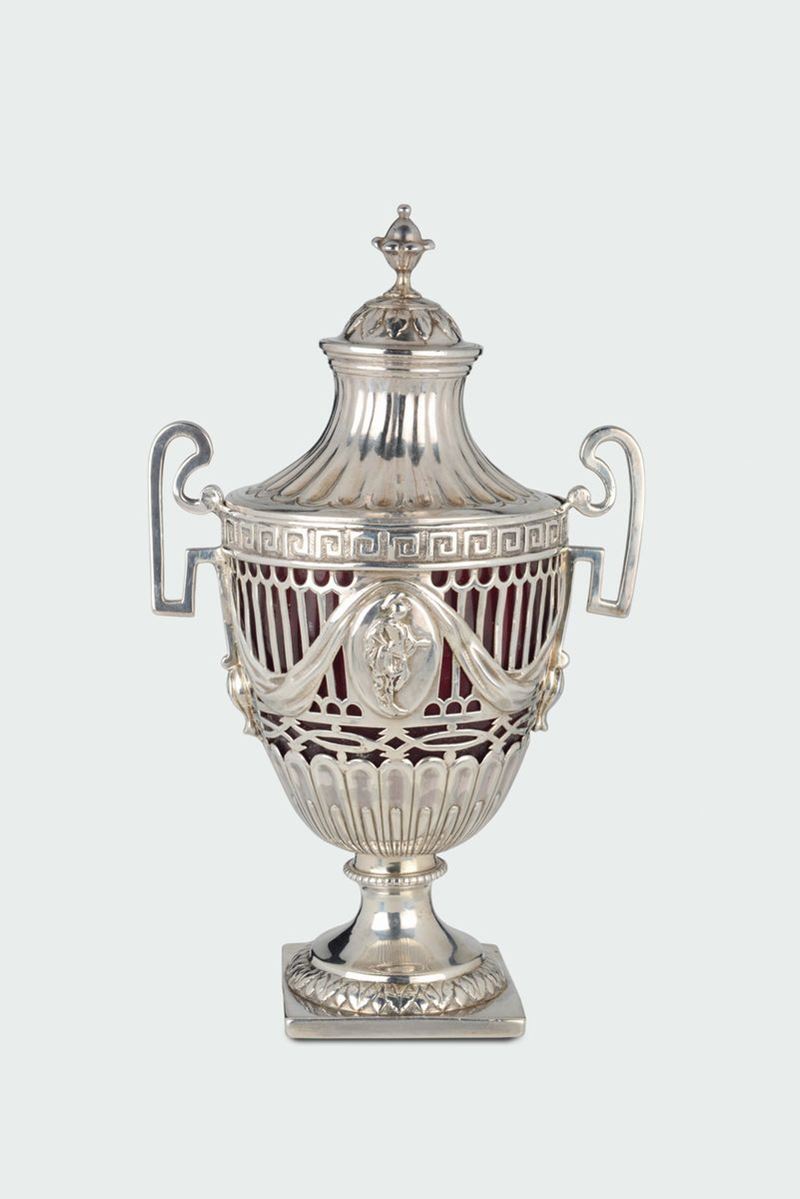 Vaso biansato in argento con corpo traforato, argentiere Samuel-Wood, Londra 1772