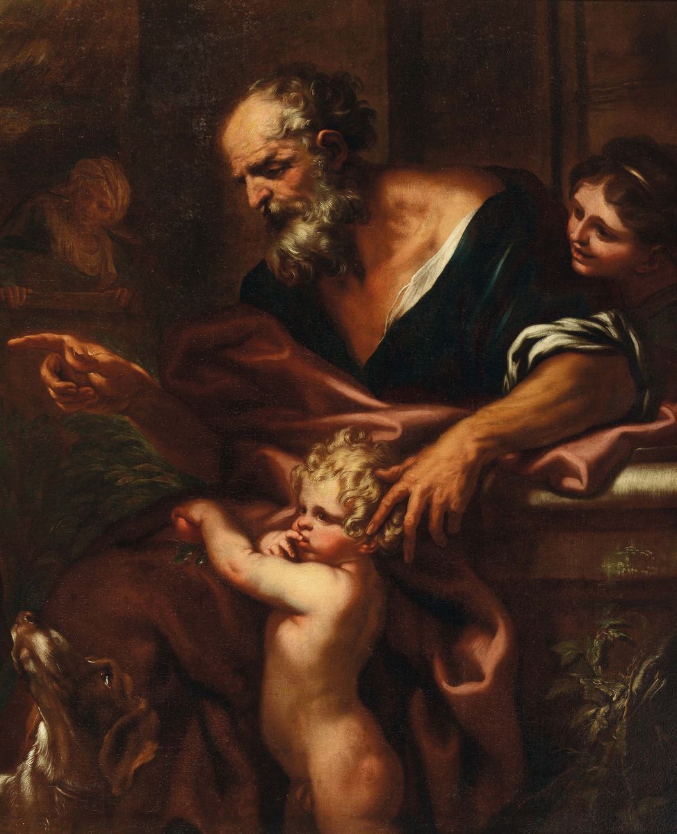 Domenico Piola (Genova 1627-1703) Abramo che caccia l’angelo e il figlio Ismaele