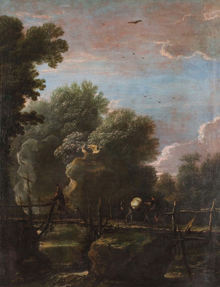 Scuola del XVII secolo Paesaggio con ponte