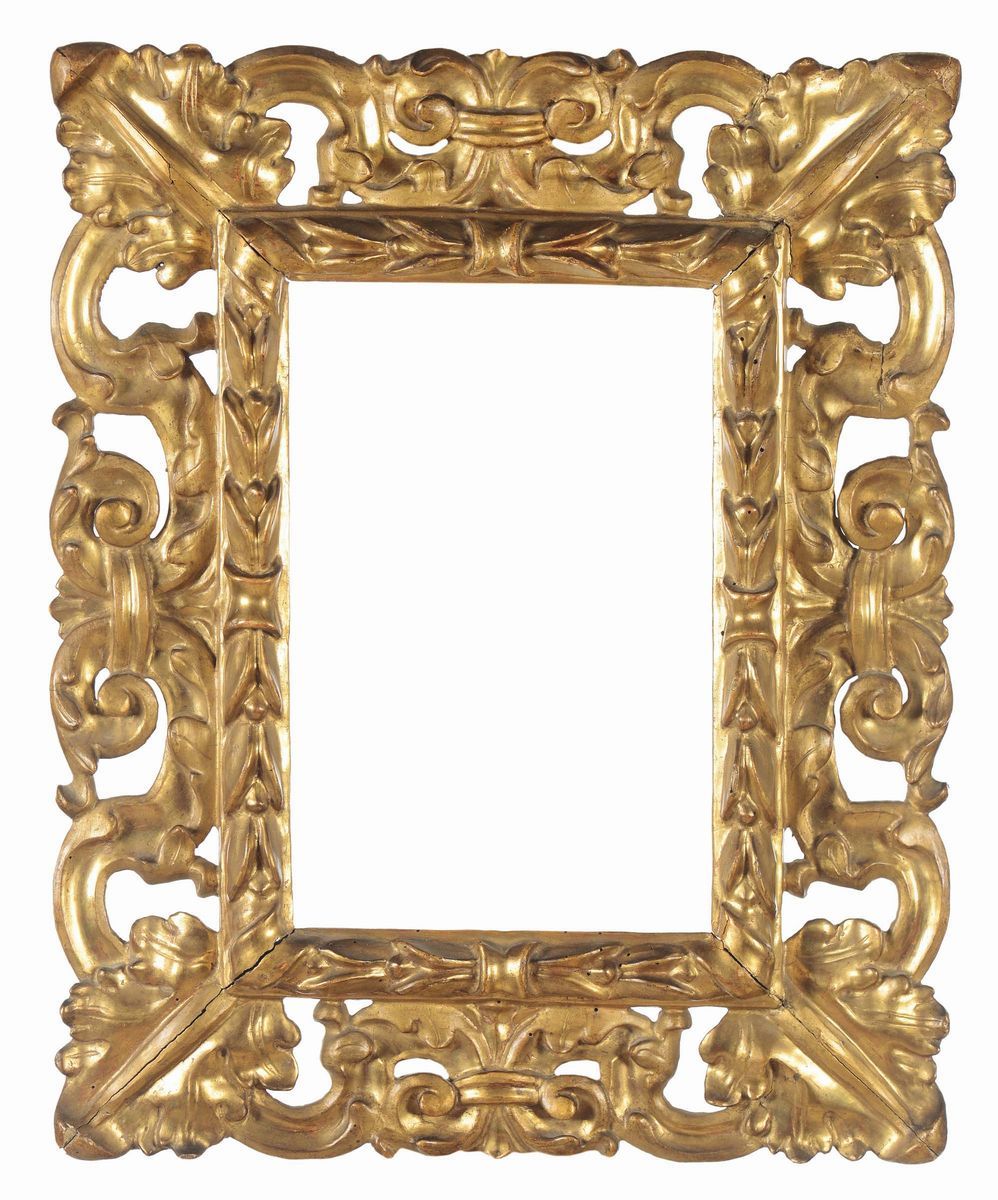Coppia di cornici in legno intagliato ed interamente dorato, firmate al retro Giovan Battista Cavazzi, inizio XVIII secol [..]
