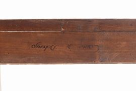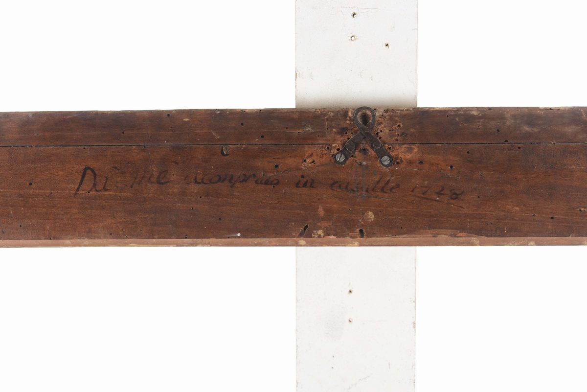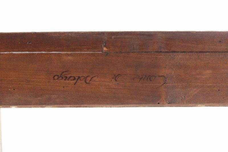 battuta liscia, fascia piatta decorata a bulino con elementi fogliacei, iscrizione sul retro, cm 129x98 (108x67,5)