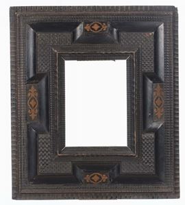 Due cornici guillochè di cui una con intarsi in legno chiaro, XX secolo