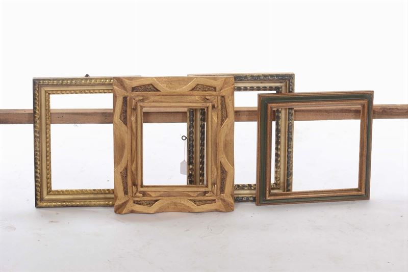 Gruppo di sei cornicette diverse dorate e intagliate, XIX-XX secolo