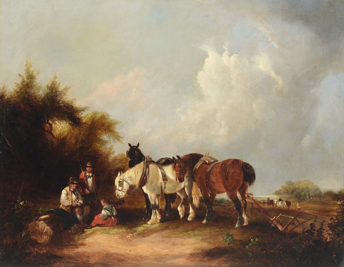 Anonimo del XIX secolo Contadini a riposo con cavalli