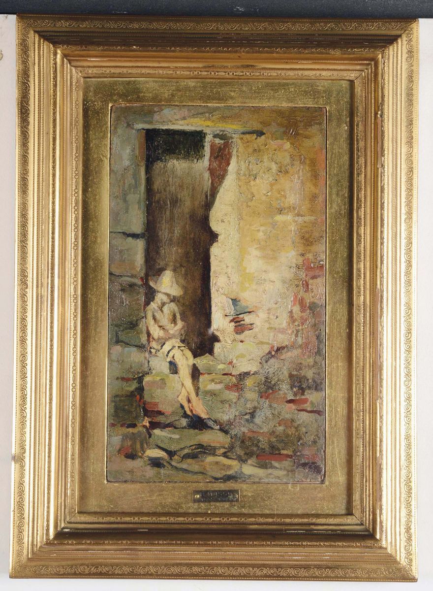 Benedetto Musso (Laigueglia 1835-1883) Ragazzo sull'uscio al sole