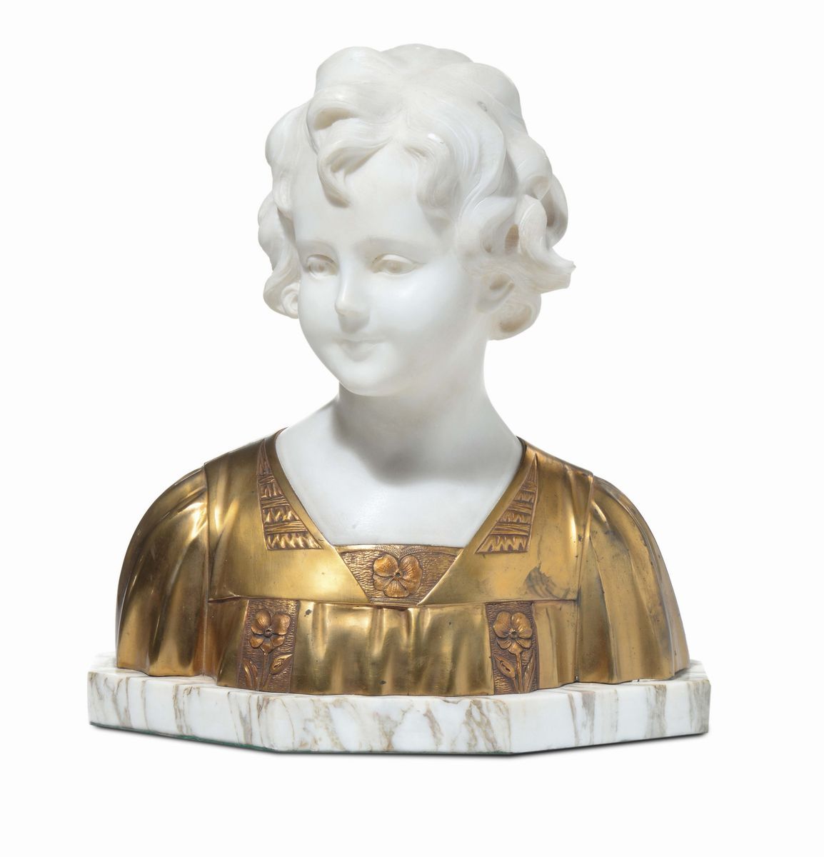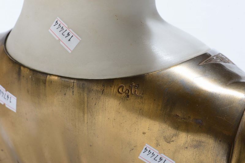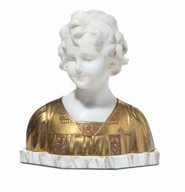 Busto in marmo bianco e bronzo dorato, XX secolo
