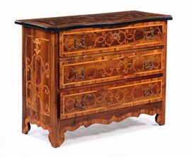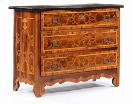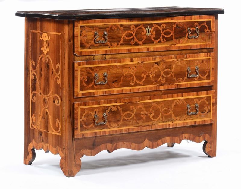 Cassettone in legno lastronato ed intarsiato, Piemonte XVIII secolo