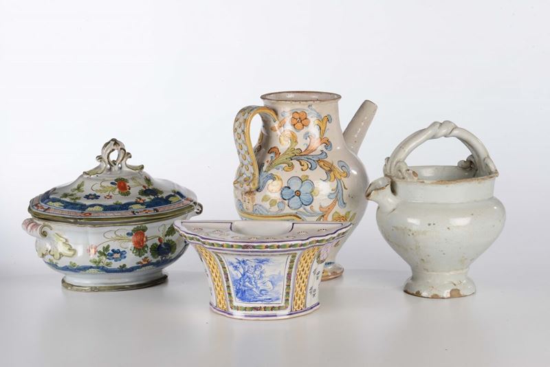 Cinque pezzi in maiolica di gusto antico, XX secolo