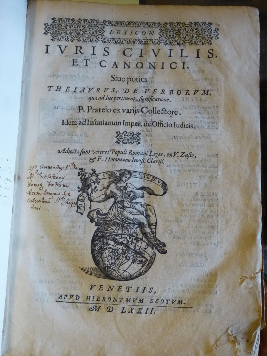 Venezia,Zenario,1585.Legatura antica in pergamena rigida.Si unisce nel lotto: Lexicon iuris civilis et canonici..Venezia,Scoto,1572.Legatura in pergamena floscia. Abrasioni e piccole mancanze.